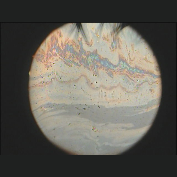 Aufgrund unterschiedlicher Schichtdicken entsteht ein Interferenzmuster, wenn weißes Licht, das an der Oberfläche der Lipidschicht reflektiert wird mit Licht, das an der Grenzfläche zur wässrigen Schicht reflektiert wird, interferiert.