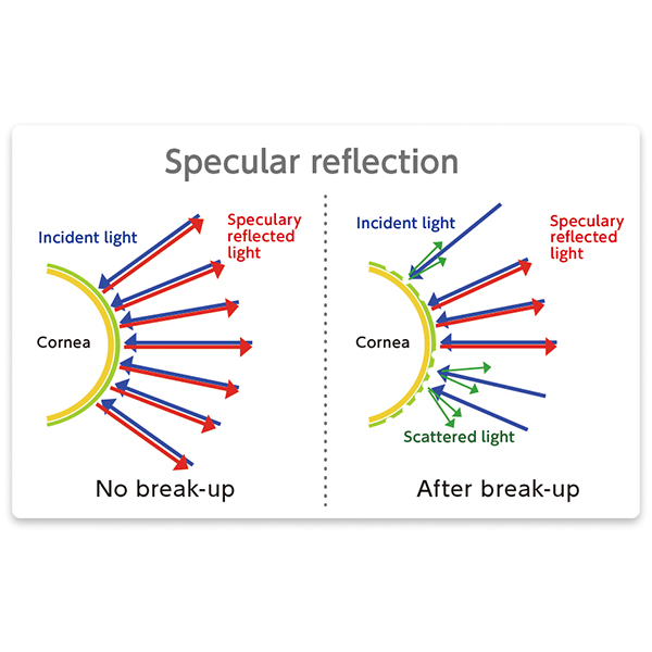 In addition to specular reflection observation, the tear time (NIBUT) of the tear film can be measured non-invasively.