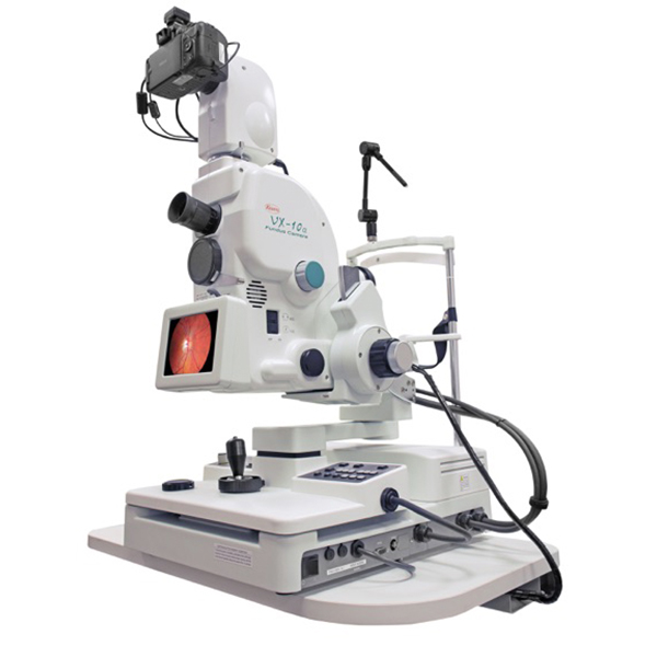 Kowa ist Pionier bei der Kombination von non-mydriatischen und mydriatischen Netzhautkameras. Die VX-10a verfügt über folgende Modi: non-mydriatisch, mydriatisch und FA mit einem Bildwinkel von 50° im vollständig mydriatischen Modus. Die Optik ist auf einem schwenkbaren Arm montiert, um auch Peripheriebereiche der Netzhaut fotografieren zu können. Im SP-Modus sind im Falle einer nicht ausreichenden Mydriase sowohl Farb- als auch FA-Aufnahmen möglich. Die Farb- und FA-Aufnahmen können auf dem LCD-Monitor angezeigt und mit dem neuesten digitalen Nikon®-Kameraaufsatz fotografiert werden. Über optionales Zubehör können auch F.A.F. Aufnahmen gemacht werden.
